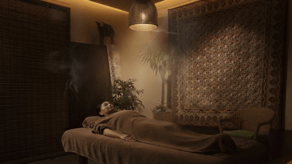 「サウナ以上、サウナ未満」の心地よい温度で、森と異国の癒し空間の中、冷えやデトックス、リラックスをサポート。まるで“寝るよもぎ蒸し”のように、横になってリラックスできる新しい温活スタイルです。